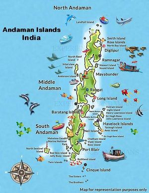 The Andaman Islands are an Indian archipelago in the Bay of Bengal. These roughly 300 islands are known for their palm-lined, white-sand beaches, mangroves and tropical rainforests. Coral reefs supporting marine life such as sharks and rays make for popular diving and snorkeling sites. Indigenous Andaman Islanders inhabit the more remote islands, many of which are off limits to visitors.